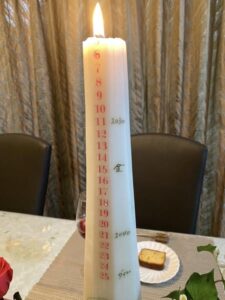 5月のフラワームーンの日に 宮崎で結婚40周年のお祝いをしましたが、自宅には巨大なキャンドルがあるのです
