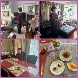 名前はルクリアココ。におい桜の品種だそう。名前の通り 凄く芳醇な香りです。朗読フェスティバルを終えた翌日から、きらめきサロンはクリスマスグッズを飾り、生徒さんをお待ちしています。