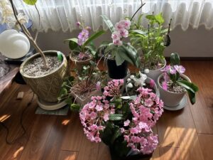 初冬の窓辺に、可愛らしいピンクの鉢植えを頂きました。