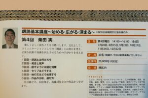 NPO日本朗読文化協会・高輪区民センター・高輪図書館共催による「第15回高輪朗読会」が先週土曜日に開催され、私は司会を務めさせて頂きました。
