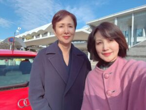 アナウンサーとしても朗読家としても、私にとっては雲の上の存在です。足を引っ張らないよう頑張ります。今日は打ち合わせ後 宮崎ブーゲンビリア空港まで、薗田さんの真っ赤なアウディで送って頂きました。眩しい南国の日差しを受けながら、決起の記念撮影