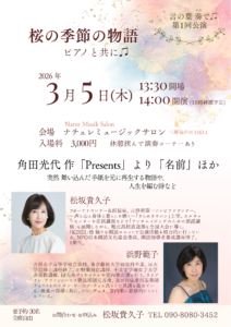言の葉 奏で♬第1回公演「桜の季節の物語~ピアノと共に~」