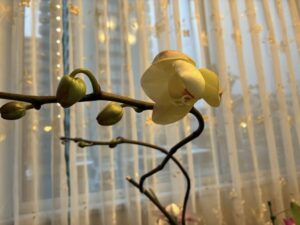 2014年から毎年2月〜8月まで我が家の窓辺で花を咲かせてくれる胡蝶蘭。2月12日朝、今年最初の花を咲かせてくれました