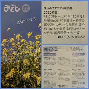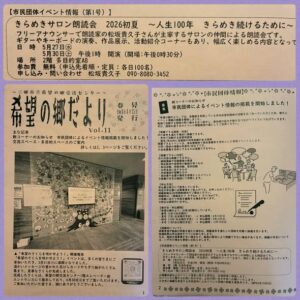 「きらめきサロン朗読会2026初夏」は、会場となる「希望の郷交流センター」が発行する「希望の郷だより」で、市民団体イベント情報の第1号として掲載して頂きました